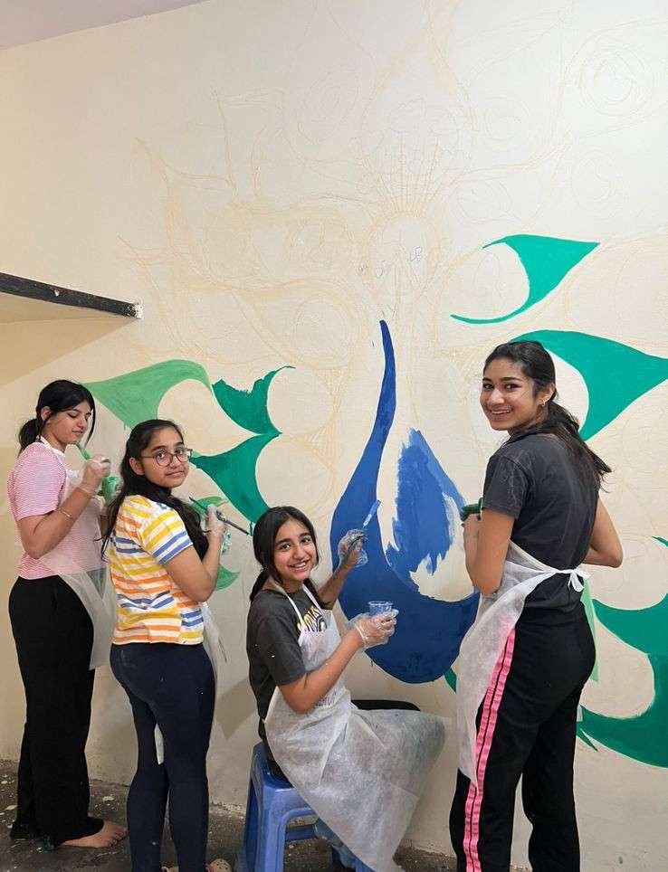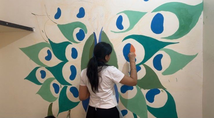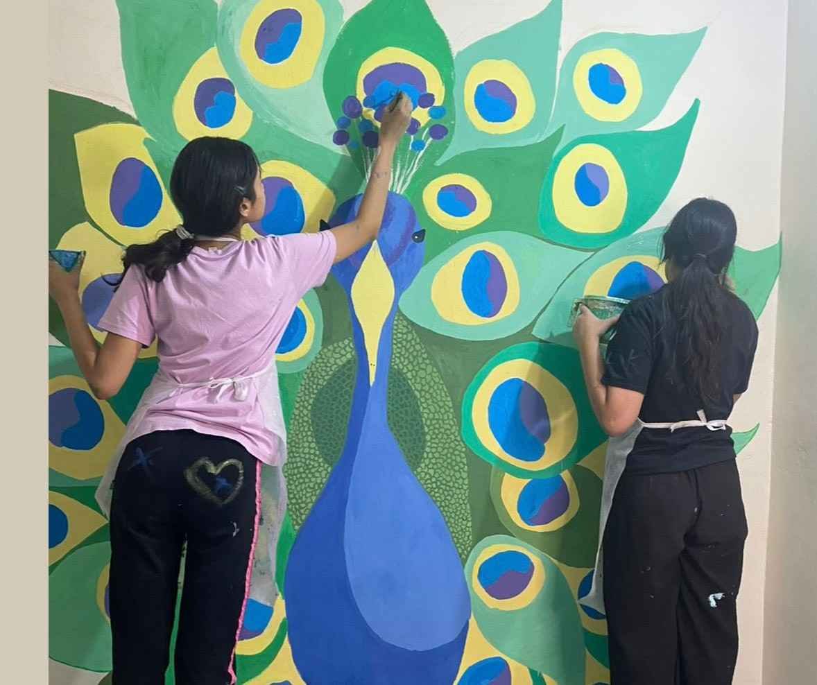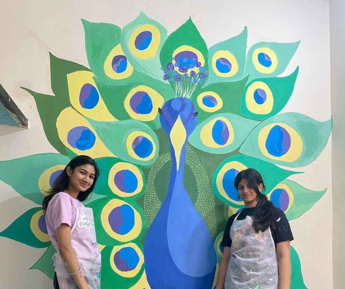 For the “Art on Walls” project, I helped paint the walls of a school in a rural village in Gurugram, Haryana. Over 3 days, our team of 13 artists transformed 1000sq feet of wall using different techniques, creating a bright, happy and lively environment for the children to learn in.