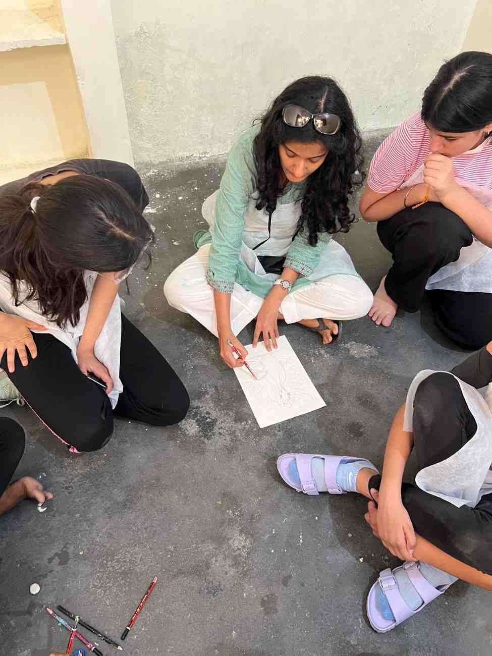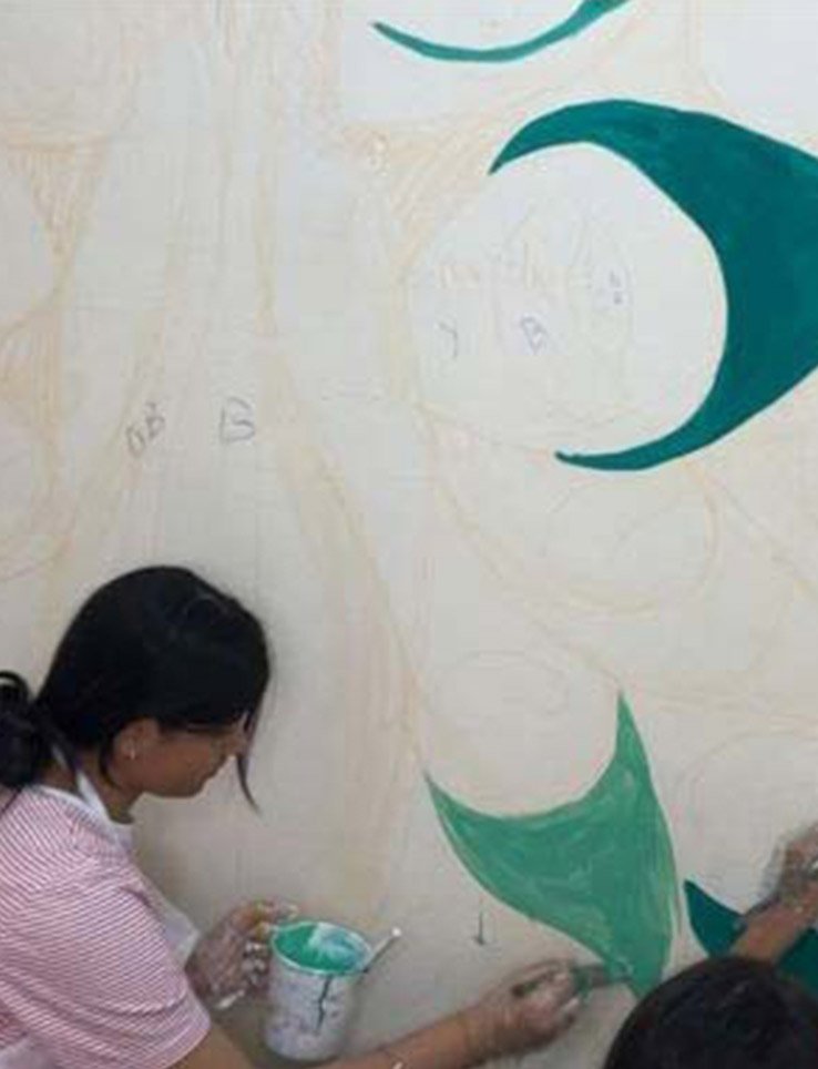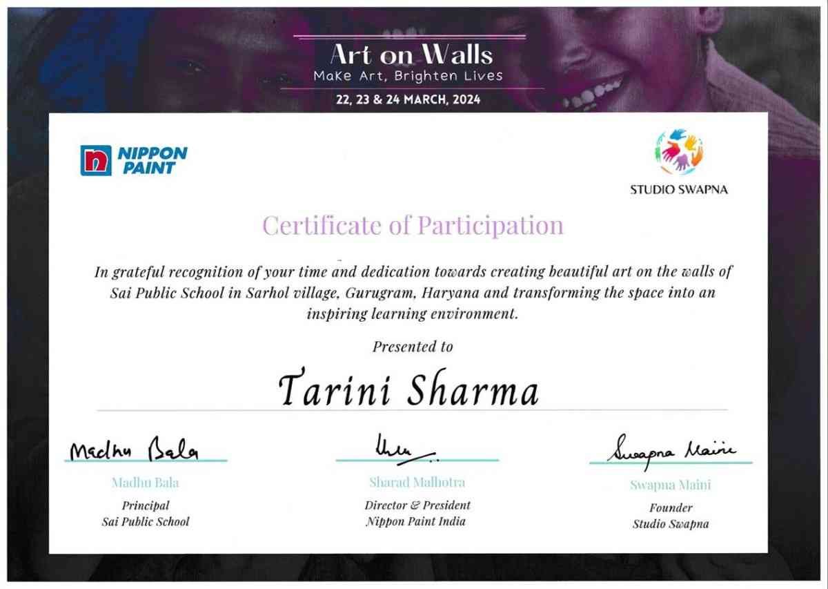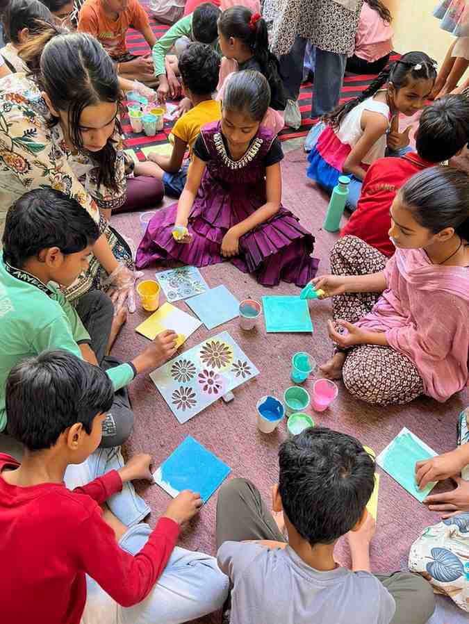 For the “Art on Walls” project, I helped paint the walls of a school in a rural village in Gurugram, Haryana. Over 3 days, our team of 13 artists transformed 1000sq feet of wall using different techniques, creating a bright, happy and lively environment for the children to learn in.