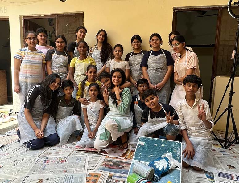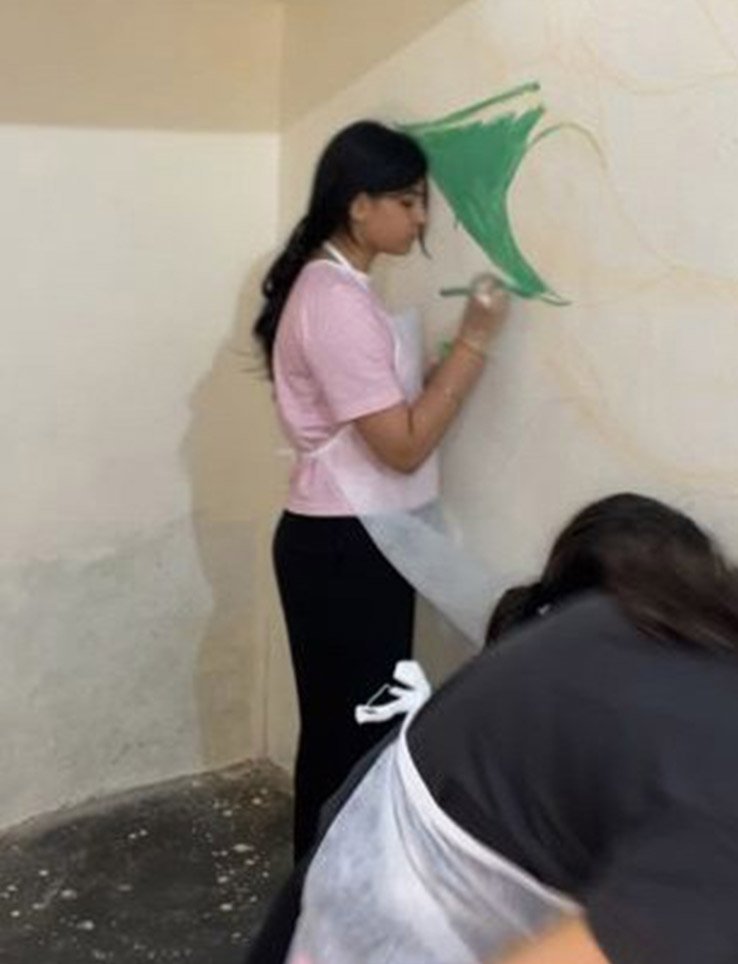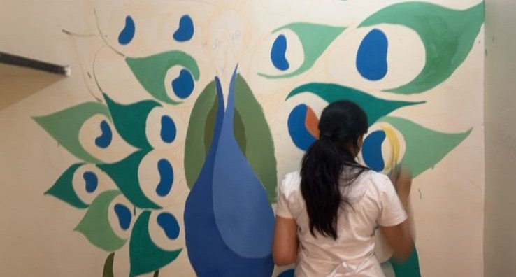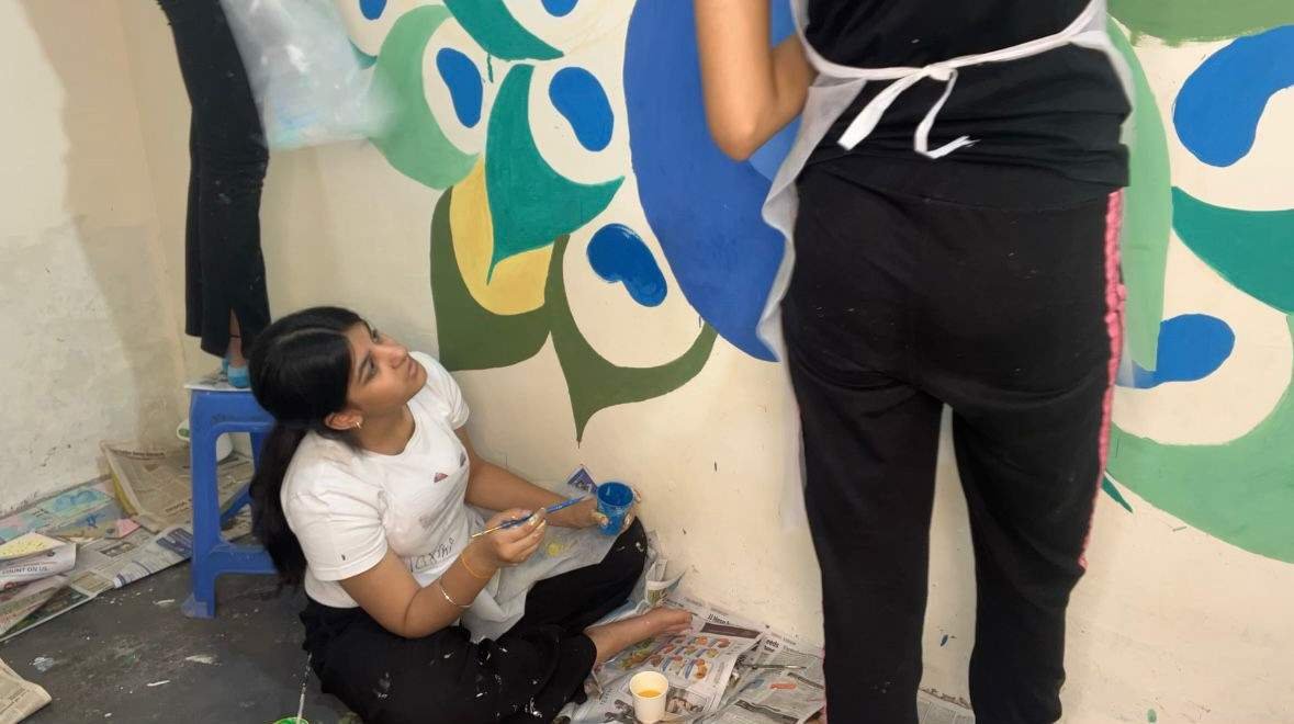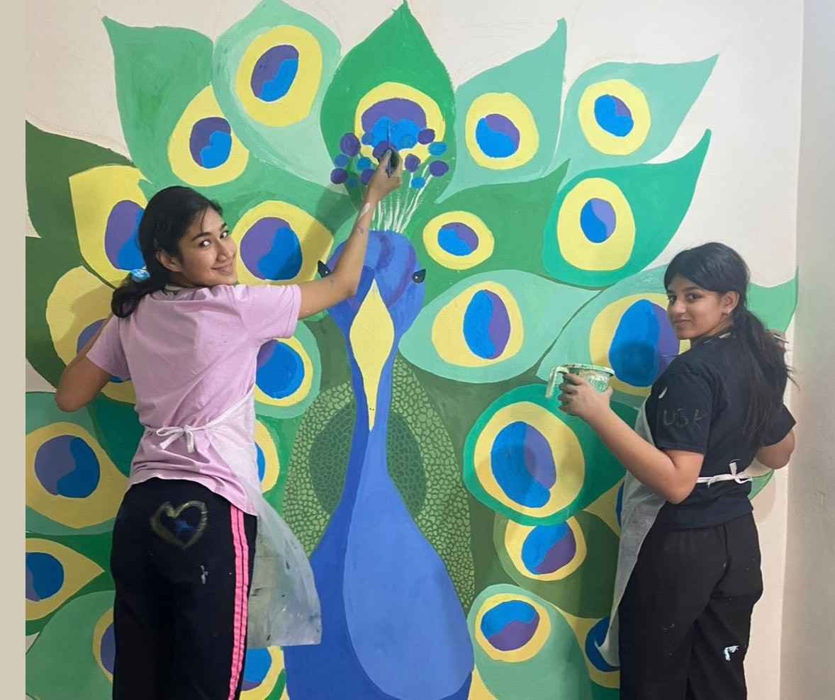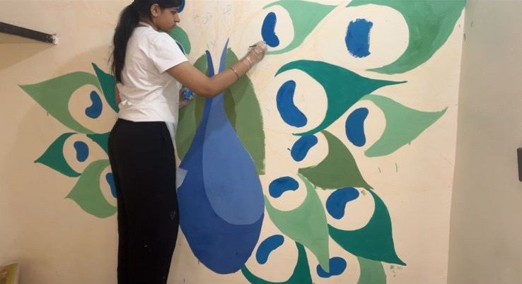 For the “Art on Walls” project, I helped paint the walls of a school in a rural village in Gurugram, Haryana. Over 3 days, our team of 13 artists transformed 1000sq feet of wall using different techniques, creating a bright, happy and lively environment for the children to learn in.